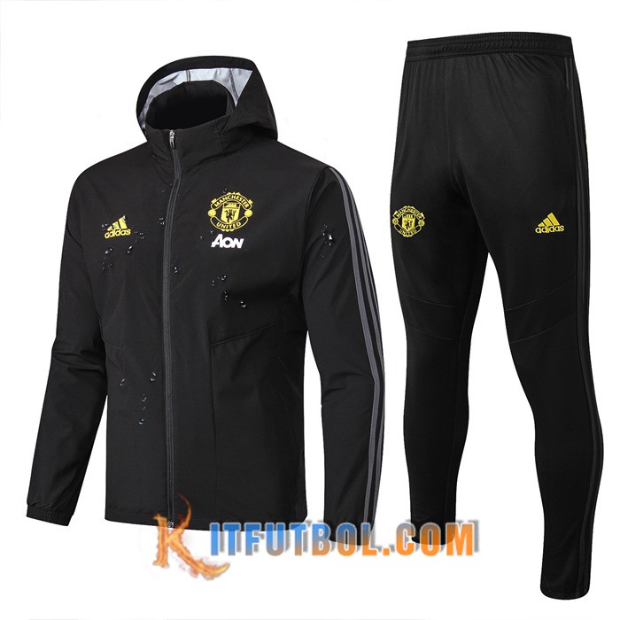 Nueva Chandal Futbol - Chaqueta Rompevientos + Pantalones Manchester United Negro 19/20