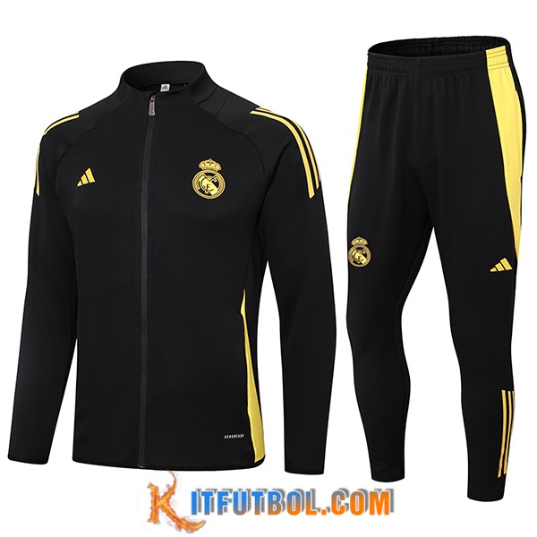 Chandal Equipos De Futbol Chaquetas Real Madrid Negro/Amarillo 2024/2025